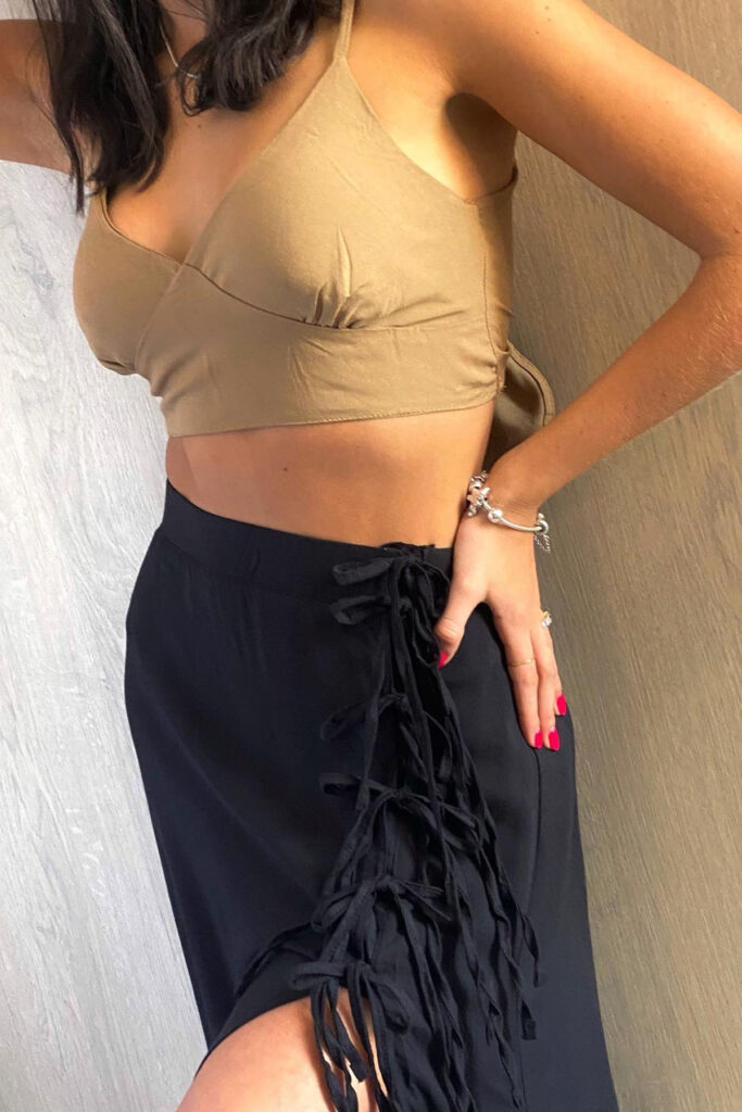 Top con copa triangulares y anudado en espalda. Disponible en Color 3 hermosos colores Cafe, Negro y estampado Zebra.