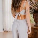 Enterizo cutout y espalda para amarrar. apertura en botas. esta elaborado en chalis, una tela deliciosa, fresca y con muy buena caída.