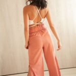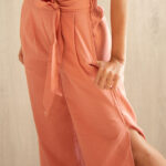 Pantalón con cinturón en cintura y prenses. Elástico posterior y costados con abertura.