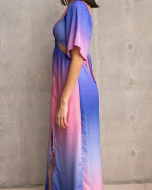 Vestido forrado en busto y espada para amarrar. cutout en cintura.